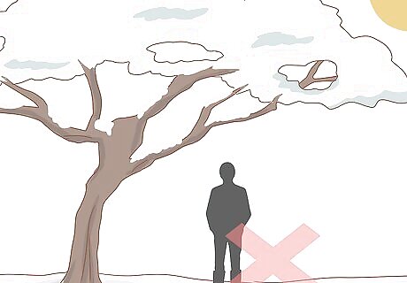 Avoid shade and shadows. Even if the temperatures are low, the sunshine can still warm your body if you're standing in it. Staying in shaded areas or shadows makes it feel significantly colder outside than if you stand in the sun. There is a 10-15 degree temperature difference between standing in the shade and standing in the sun. Other factors affecting degree difference include a wind or breeze blowing through, as well as how much you've been sweating.