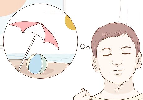 Think of a warm, sunny place. Actively keeping your mind on warm weather can take your mind off the cold temperatures. Most people tend to think about the beach or the tropics, where the weather is warm year-round. It's easier to think of warm places you've been personally. Everyone knows it's always warm in the Bahamas, but if you've never been there, it's hard to personally imagine it. Try thinking of a warm fire or sand on your toes.