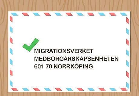 Mail a paper application form if you can't apply online. If you don't have reliable access to the internet, you can print a paper copy of your application and mail it to the Swedish Migration Agency along with payment of your fee. Mailing in a paper application takes longer to process than online applications. Send your application to Migrationsverket, Medborgarskapsenheten, 601 70 Norrköping. Use registered mail so you'll know when the Swedish Migration Agency has received your application.