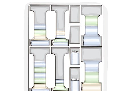Store batteries where you can find them. Batteries tend to accumulate at the bottom of junk drawers, and it is often a challenge to find the right sized battery when you need it. You can buy purpose-built battery storage racks to keep your assortment of batteries neat and accessible.