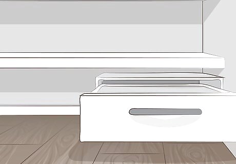 Install a single drawer. A solo drawer placed on the floor of the closet can be used to tidy away items that don't fit elsewhere. Avoid placing a whole unit of drawers here, however, as it could take up too much room and/or attract excessive junk to your closet.