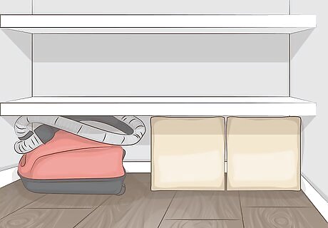 Store bulky items on the floor of the closet. The floor spaces should be reserved for tall and/or heavy items that you can't hang up. These might include your vacuum cleaner or trash can.