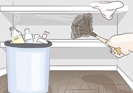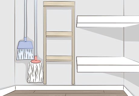 Declutter the closet. Throw out anything you don’t need. Use a feather duster to clean out any cobwebs. Wipe down the shelves and baseboards; and vacuum the floor.