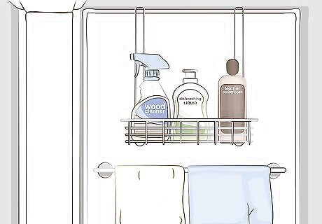 Mount hanging storage. You can make better use of space by hanging items from the walls of the closet, the inside of the door, or the underside of your shelves. Affix hooks, clips and pegs to maximise your space. A towel bar affixed to the door can be used to air out damp cleaning rags. If you have a lot of small tools or other items, you could install a pegboard and use it to store as many hooks as you need. A hanging caddy, like an over-the-door shoe organizer, provides lots of storage.