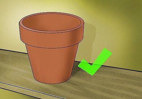 Keep your extra pots on a shelf or in a cabinet. Having flower pots scattered around will make your space feel cluttered. You'll also run the risk of breaking your pots, leaving dangerous pieces of sharp ceramic in your shed or garage. If you don't have a shelf or a cabinet, try keeping your pots in a plastic box. Stack your pots inside of each other and place them in a corner if you don't have anywhere else to store them.