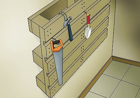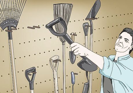 Mount a pegboard to the wall and use the peg to hang your tools. Pegboards are a popular storage option because it's easy to move the pegs around to organize your tools exactly how you want them. Arrange your tools by size to make it easier to find what you're looking for.