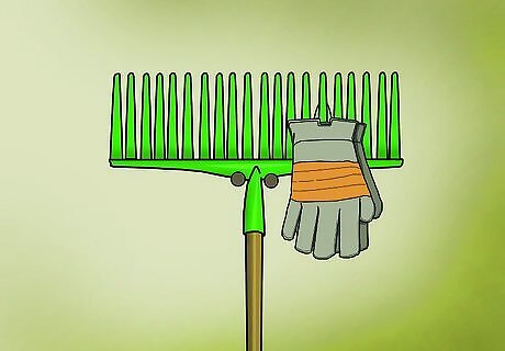 Hang a rake head upside-down from the wall for a unique hand tool holder. A steel rake head makes a unique holder for your garden gloves, trowels, spades, and other small objects. If the tool won't fit on the tines of the rake, loop twine through the hole on the handle.