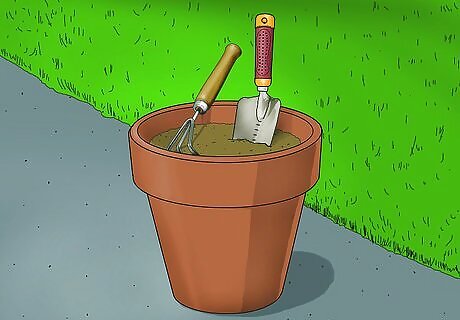 Fill a clay pot with sand and stick your hand tools into the sand. If you have a lot of small hand tools, it can be hard to keep them sorted so they're easy to see. By keeping them upright in sand, you'll be able to quickly grab the tools you need. This will also keep the blades of your tools from becoming dull as they bump into each other in a box or a drawer.