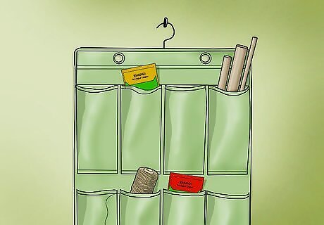 Use a hanging shoe organizer for even more storage space. Hanging shoe organizers with pockets are ideal for organizing any number of small objects. Group together seed packets, dowels and stakes, twine, weedeater string, or any of your other garden supplies.