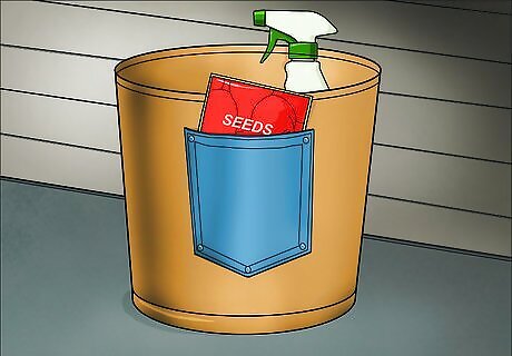 Create a holder for your tools out of a bucket and old jeans. Cut the pockets off of a pair of old jeans, then use super glue to attach the denim to a garden bucket. You can store your hand tools, seeds, and other small objects in the pockets, while the inside of the bucket can hold spray bottles or seedlings.