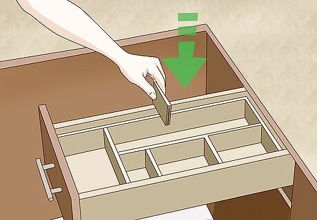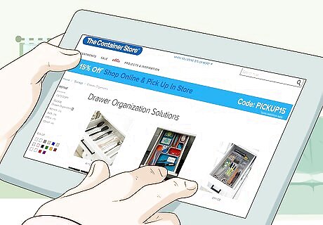 Purchase drawer dividers online or at a department store. Drawer dividers will help you separate your products into different compartments and will make it easier to quickly locate the things that you need. Measure the dimensions inside of your drawers with a ruler or measuring tape, then find dividers that will fit inside of them. Dividers will usually have size information on their packaging or in the product details.