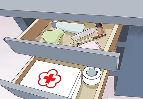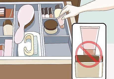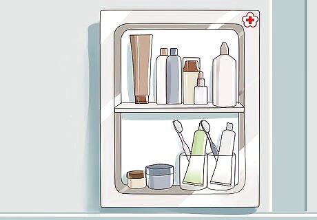 Store your products in the medicine cabinet as an alternative to drawers. A medicine cabinet can also make great backup storage if you run out of space in your drawers. Arrange the products in your medicine cabinet as neatly possible. Group different types of products together as you would for your drawers. Medicine cabinets are great for smaller items like medicine and face creams. Medicine cabinets are also great if you want to keep certain items away from small children. If you don’t have a medicine cabinet in your home, you can install one yourself.
