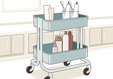 Store your items in a rolling cart if you don't have storage room. If you’ve used other storage solutions and still don’t have space, you can buy a rolling cart from a department store or online. Organize the cart like you would your drawers so that you can easily access different categories of product.