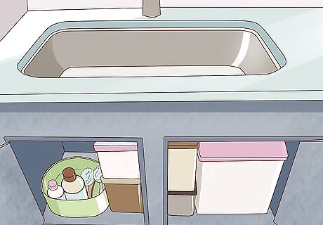 Use the area under the sink to store larger items like cleaning supplies. The area under the sink is the perfect place to store cleaning products because there is often more room there. You can also put whatever bathroom items that don’t fit in your drawers or medicine cabinet under the sink. Larger items like a plunger or toilet scrubbing wands can also go under the sink.