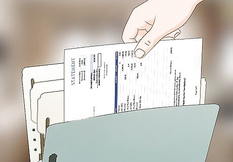 Keep all of your statements and billing notices in one place. Whether you keep a more old-fashioned paper file or a digital file, make a single place for all of your financial records. Create subcategories that identify the type of bill or expense. If you're keeping digital records, you may be able to use your email account to help organize your records. Use the same email address for all of your bills and create tags or filters to put those billing statements in categories. To reduce clutter in your inbox, open a separate account for bills and don't use that email address for personal email. You can also scan your bills and make PDFs to keep on your computer as a digital copy.Tip: Not all financial documents can be digitized. Even if the majority of your records are digital, you'll still need a small file box to keep documents such as car titles or real estate deeds.
