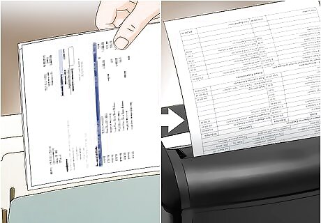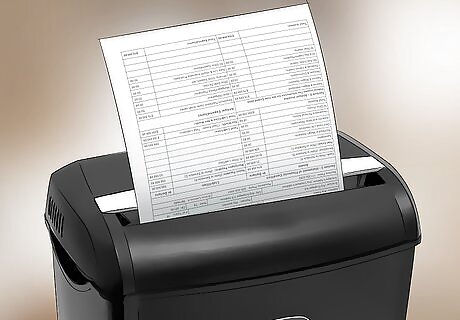 Buy a shredder to use when disposing of financial documents. Any document that has your signature, account number, medical, legal, or other identification information should be shredded rather than simply thrown in the trash. By leaving this information intact you are putting yourself at risk for identity theft. If you don't own a shredder, you can buy a basic one online or at office supply stores for typically around $20 or $30. There are more expensive versions that may shred faster, or shred more documents at once, or that also shred CDs or credit cards. It's up to you whether a fancier shredder is worth the investment for you. You can also subscribe to a shredding service if you don't want to do all that work yourself. For example, in the US, office supply stores such as Staples or Office Depot will shred your documents for you at the rate of about $1 per pound.