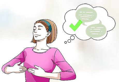 Practice relaxation techniques. Fear often breeds anxiety. To help reduce your anxiety, you can teach yourself relaxation techniques to use when you feel yourself becoming nervous, anxious, tense, or afraid. Slow and deep breathing can help calm your nerves. Practice by sitting straight with a hand on your stomach and a hand on your chest. Breathe deeply into your lungs. The hand on your stomach should rise while the hand on your chest should not. Try counting ten breaths. Once you've learned deep breathing, you might want to try mindfulness meditation. Sit straight with your eyes closed. Focus on your breath as you inhale and exhale. Then start noticing other sounds and sensations. If you feel yourself becoming anxious, think about your breathing again. Try progressive muscle relaxation. Start by tensing every muscle in your right foot. Hold it for a few seconds before relaxing. Repeat with your left foot before moving on to all of the other muscles in your body. This can train you to relax your muscles when they are tensed and tight.