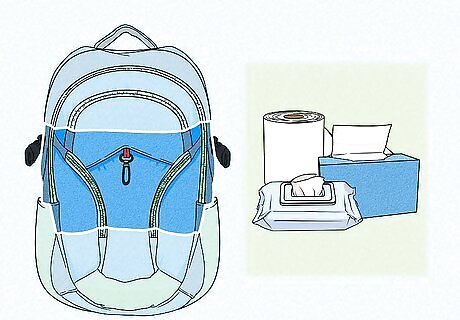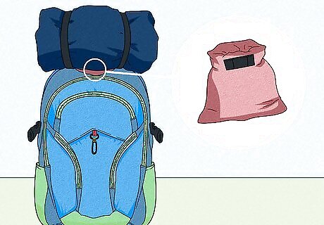 Protect your pack from rain with a waterproof rain cover. The most common covers go around the outside of your backpack and fasten around the back panel with a cord (some backpacks come with one). Pack a cover and take time to put it on if there’s wet weather in the forecast. A wet backpack is heavy, even if the contents inside are dry. Protect your clothing, electronics, and bedding by putting them in plastic bags inside your backpack (even if you have a rain cover). If you don’t have a cover, line the inside of your backpack with a trash compactor bag before you begin packing. They’re cheap, light, and good at keeping your belongings dry.