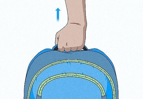 Lift the backpack up to your thigh with the haul loop. The haul loop is at the top of the back panel of your backpack. Let it rest on your thigh for a moment so you can feel the weight of it, keeping your hand on the haul loop for balance.