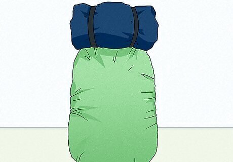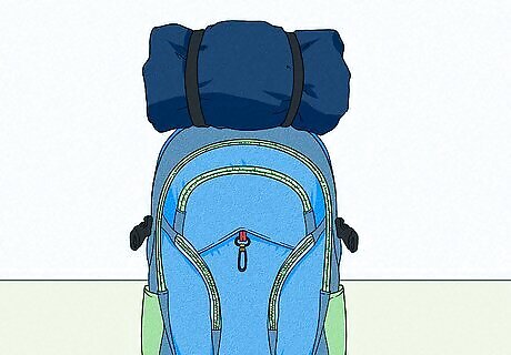 Bottom Zone: store infrequently used and bulky items in this section. These items at the bottom give you a foundation to stack your other belongings on top of and ensure the bottom of the pack isn’t too heavy. These will be the hardest to reach on the trail, so use this space for anything you won’t need until you stop to make camp. This zone will almost always include your sleeping bag, as well as things like sleeping mats and spare clothes or towels. Some backpacks have a separate sleeping bag compartment. If you have an external frame backpack, lash your sleeping bag to the frame underneath the actual pack.