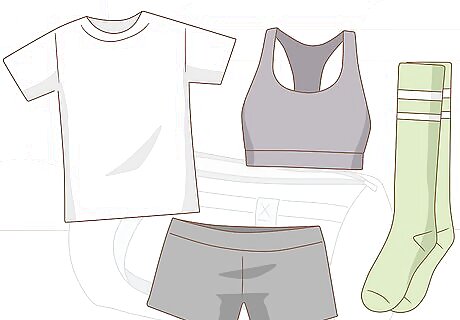 Pack athletic clothing. It's no fun going home in sweaty clothing. Pack a T-shirt, Spandex or shorts, and tall socks to change into before you begin. Include a sports bra if you need one. Store your clothes in plastic bags so they don't get your bag sweaty after the game. It's easy to lose socks or forget to pack them after doing laundry. Bring along an extra pair for yourself or your teammates.