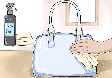 Wipe down or wash your bag on a weekly basis to keep it clean. Regular maintenance will keep the outside of your bag just as neat and clean as the inside! Try to give your purse a little attention every week to address stains and protect it from ordinary wear and tear. Cleaning Your Purse If your purse is made of leather, suede, or a delicate fabric, apply protectant products to keep it safe from spills or dirt. Make sure to use a product made specifically for that fabric. Check your bag’s label to see if it’s washable—bags made from rougher fabric might be. Give it a wash every 1-2 weeks to keep its color clear and vibrant. Remove stains as quickly as possible, whether your purse is leather, suede, or another fabric.