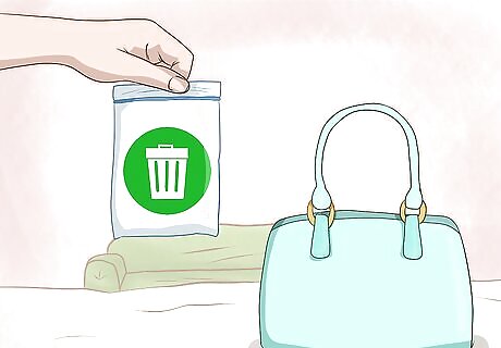 Put trash items in a small Ziploc and empty it every day. Even the most organized purse accumulates trash from time to time! To keep wrappers and receipts from dirtying up your main compartment, designate a small Ziploc as your “trash bag.” Fill it up throughout the day and toss the items into the garbage when you get home. You can also use a small prescription pill bottle to hold trash. Reuse your trash baggie as long as you can, until it gets dirty.