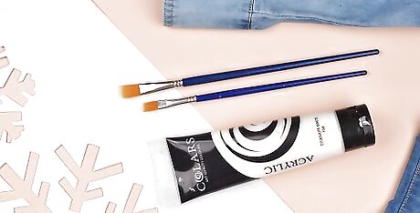 Buy the paints and brushes you want. Pick the colors you want to use and purchase two paintbrush sizes, a big brush and a small brush. You can also purchase glitter if you want to top your design with glitter at the end.