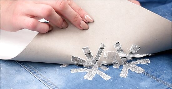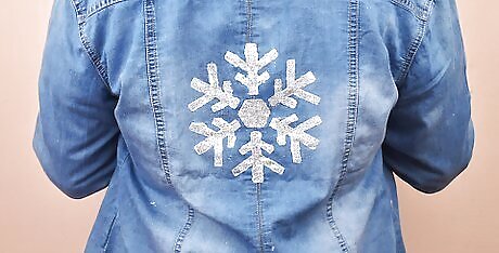 Allow the glitter to dry. Place a fan near the jacket and allow 24 hours for the jacket to dry. Do not remove stencil or pins while it is drying.