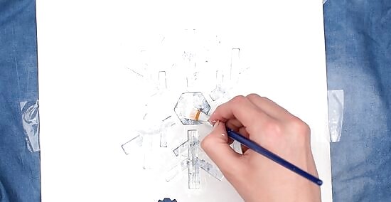 Allow the layer to dry. Allow up to three hours for the second layer of paint to dry. Do not remove the stencil or pins.