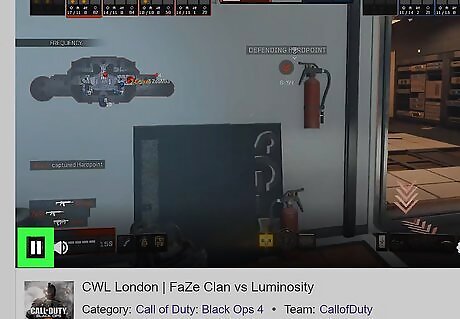 Click the pause Android 7 Pause button in the bottom left-hand corner. This will pause the live stream on your end only. Click the same button again to resume watching the stream. It will turn into a giant Android 7 Play Play button after pausing it.