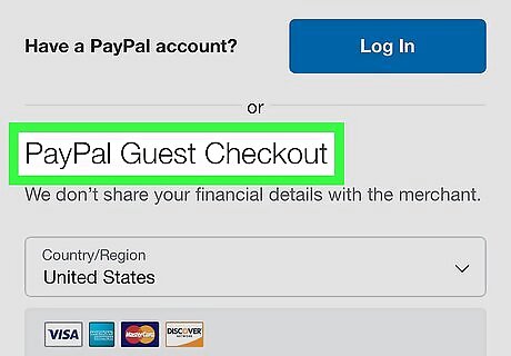 Tap Pay with Debit or Credit Card or Check Out as a Guest. This is a gray button below the login form. It will skip the login, and allow you to enter your card information via PayPal without creating an account. On different websites, this button may have a different label like Pay as a Guest or Continue as a Guest. If the seller has enabled guest checkouts via PayPal, this option will always show up as a gray button below the login form at checkout. On some websites, you may need to select No, I don't want an account now below the login form, and tap Pay Now to proceed.