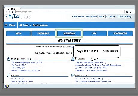 Register your business with MyTax Illinois. If you've started a business that sells goods or services, you must register with the Illinois Department of Revenue before you can conduct business in the state. You can register electronically on MyTax Illinois. Go to https://mytax.illinois.gov/_/ and click on the "Businesses" tab to get started. If you register online, your registration will only take a day or two to process.