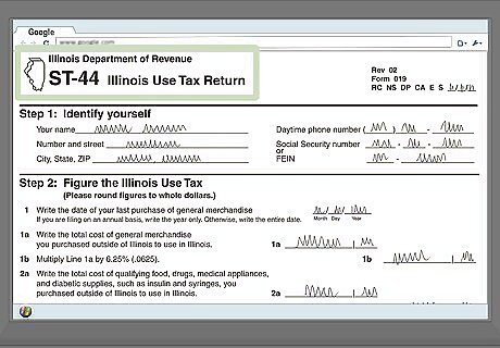 Complete Form ST-44. Once you've logged into your account, click the "Individuals" tab and select "File a Use Tax Return" from the options presented. Gather information about your purchases before you start filling out the form. If you're submitting a monthly sales tax payment, enter the exact date the purchase was made. If you're submitting the form for purchases made throughout the year, you only need to enter the year. You can download the form at http://tax.illinois.gov/TaxForms/Sales/ST-44.pdf if you want to look over it before you start filling it out on MyTax Illinois. You can also use this form as a worksheet to get your math right before you enter the figures online.