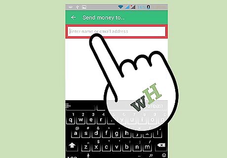 Provide the details of the person you’re paying. Enter the name or email address of the person in the text fields provided, and then select the person you want to send the money by tapping on his/her name.