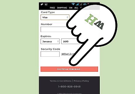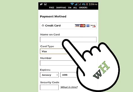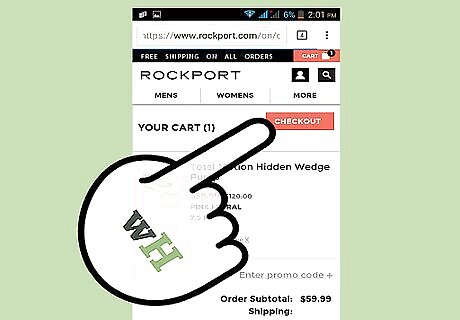 Checkout the items. Once you have added the products you want to buy to your online cart, or once you’re on the Purchase page of the website, tap/click the “Checkout” or “Buy” button. The location of this button will vary depending on the site.