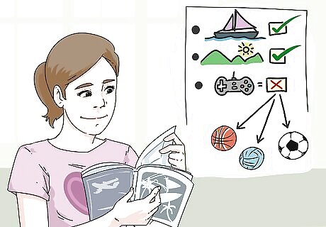 Go through the travel logs of the shortlisted places. Check each place to see whether or not it has a minimum of two things of interest for each age group. If you would rather book a place that does not offer its own attractions, come up with games or activities that you could bring to the event in order to keep everyone entertained. Look for places that offer exciting things to do, such as boat rides or fishing. If you plan on bringing your own activities, try to find a place that has plenty of space for you to set these games up, whether it's a volleyball net or a water balloon toss.