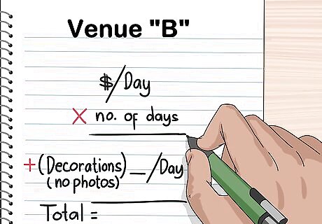 Budget for costs of entertainment at each location. Whether you are choosing to bring games and activities with you or participate in nearby attractions, such as horse riding, these costs can add up. Be sure to account for everything offered at each of your potential event locations.