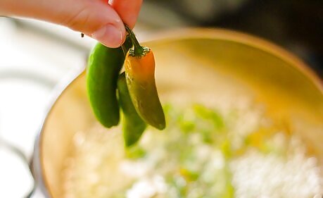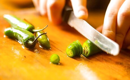Slice the peppers on a cutting board. Remove and discard of the stems. Peppers can also be pickled whole, but you will need to puncture a small hole in each pepper to prevent bursting.