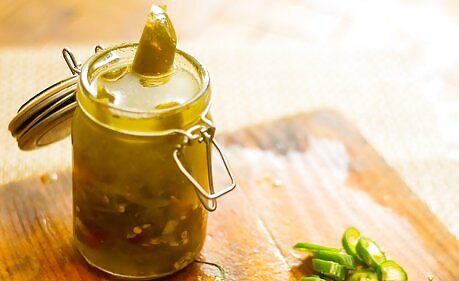 Remove the jalapeños from the saucepan and place them in a clean mason jar. Pour the pickling brine on top, leaving at least ⁄2 inch (1.3 cm) of space at the top of the jar.