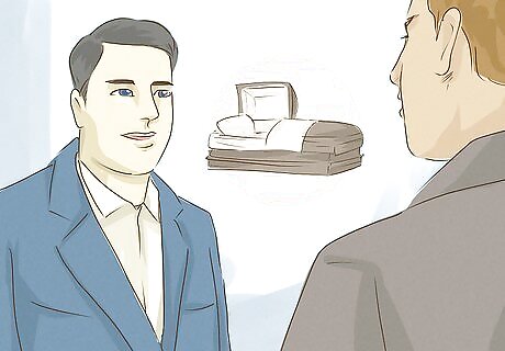 Discuss caskets when meeting with the funeral director. One large part of a funeral's expense is the casket. The funeral director will walk you through a variety of choices that you can pick from based on you and your loved one's preferences. You don't really need to know what you want ahead of time, but you should have an idea of what you can spend. If you intend to have your loved one cremated after the funeral, most funeral homes will have rental caskets for your loved one to be placed in at the funeral. While this sounds a little crass, caskets can be very expensive, and your loved one will only be in the casket for a short while. Plus, you can purchase the liner brand new.