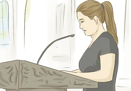 Choose someone to offer the Words of Remembrance during the Mass. While the priest will focus on God's love, one person in your circle of friends and family can offer a short remembrance about the person's life. Typically, these remarks are meant to be short, about 5 minutes long, and the priest may request an outline as a way of keeping the funeral in the Catholic tradition. Only one person can speak at the funeral. However, other people can speak at the Vigil, the cemetery, and the reception afterward if they would like to.
