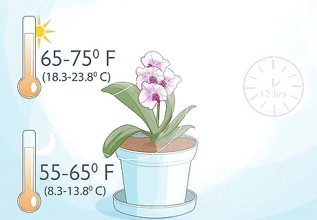Keep your orchid around 65 to 85° F (18-29° C). Most orchids come from tropical climates, meaning that they love warmth but don’t tolerate cold well. While different species have different needs, most orchids grow well in temperatures between 65 to 85° F (18-29° C). If you’re growing orchids outside, make sure your variety can withstand your area’s average temperatures.
