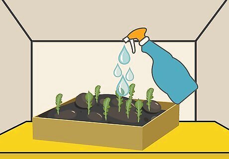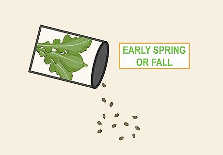 Start the seeds during early spring or fall. Arugula has the easiest time establishing itself in mildly cool weather. Start the seeds in the early spring or fall so that the temperature is right when you transplant the seedlings to the garden.