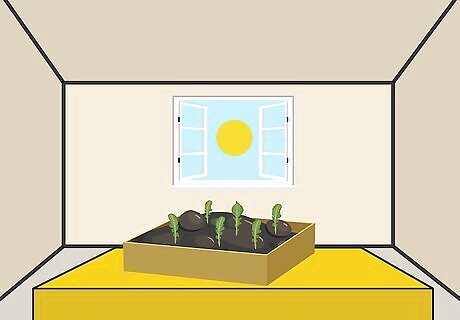 Keep the cells inside in the sunlight until the plants sprout. It's best to keep the cell container inside while you wait for them to sprout. This will keep them from being destroyed by the elements. Place the cell container by a window so that the seeds get enough sunlight or use a standard grow light or incandescent light bulb for extra light. The seeds should take about 4-6 days to sprout.