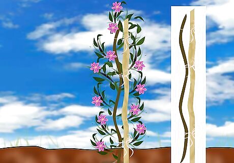 Stake tall perennials. Some taller perennials, such as delphiniums, peonies, phlox and hollyhocks, may require staking. To support the stems, place wooden stakes in the ground and tie stems to the stakes with twine.