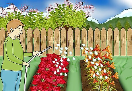 Water regularly. Because there are so many different species of perennials, watering requirements vary based on the specific plant. Keep the soil around the perennials moist, but not soggy. To prevent fungal diseases, water in the morning or early afternoon.