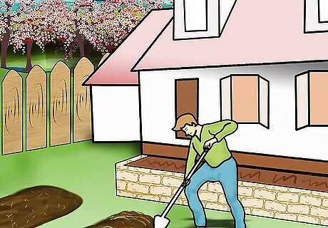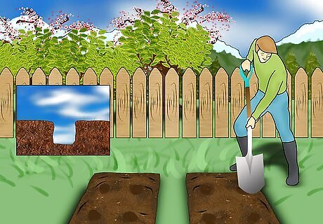Dig a hole for the perennial. Using a shovel or garden trowel, dig a hole that is slightly wider and the same depth as the perennial container. If the perennial is planted too deep, the plant will experience stress and may not thrive.