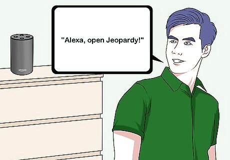 Say, "Alexa, open Jeopardy!" This starts the Jeopardy skill on your Echo device. Say, "Alexa, open Teen Jeopardy!" or "Alexa, open Sports Jeopardy!" to access these versions of the game.