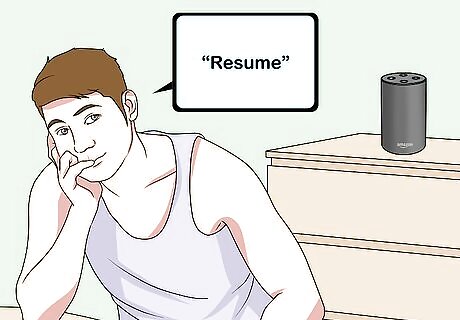 Resume a game you had to interrupt. If you had to close the skill before you were finished, don't worry, you can easily come back to where you were. Simply open the skill again and you will be prompted to either restart the day's questions or resume where you left off. Just say, "Restart," or "Resume." For example, if you wanted to continue to a previously unfinished game, you would say, "Alexa, play Jeopardy." Then when prompted, say "Resume."